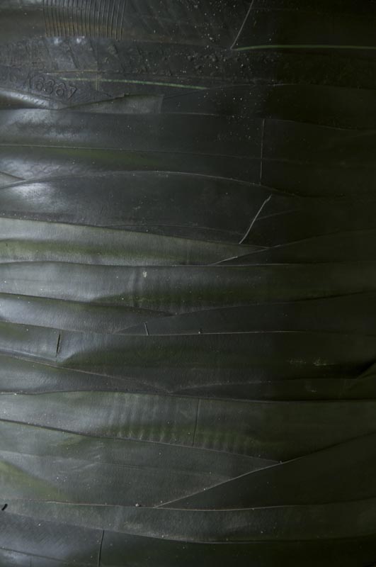 Gefäß: Hohes Gefäß mit Fahrradschläuchen umwickelt.